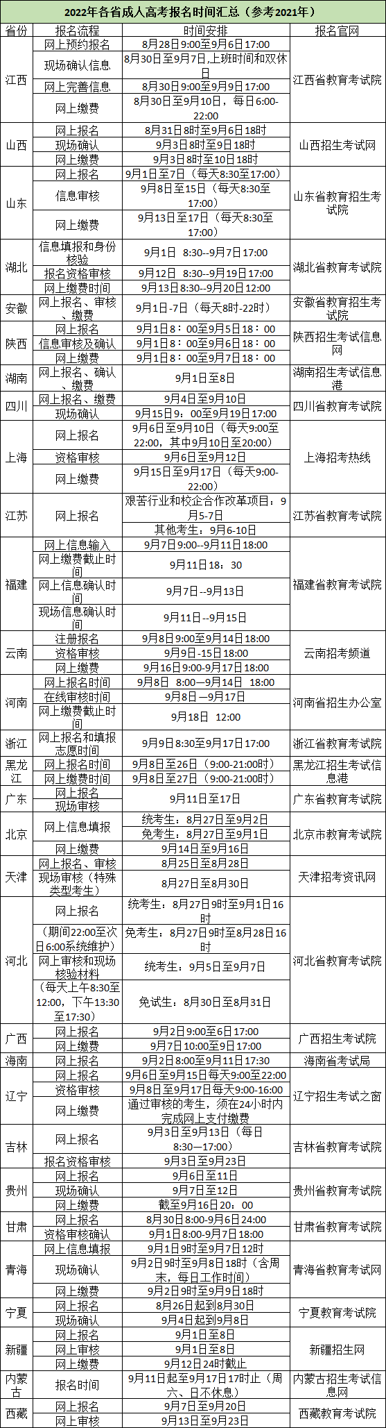 郑重声明:以上内容根据往年各省教育考试院或招生考试网发布的公告进行整理,仅作为交流和学习使用,方便考生了解各地成人高考报名官网入口及网址,并不具有权威性和确定性,具体报名官网入口及网址均以当年当地教育考试院或招生考试网规定为准。
