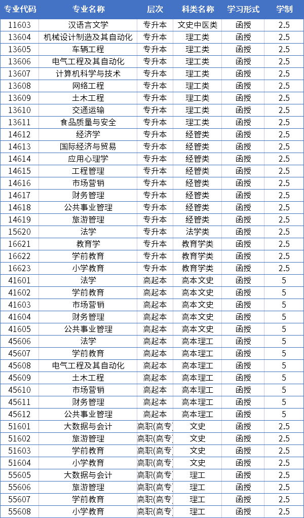 | 高中起点大专 | 51 | 文史类 | 100 |