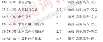 学历函授教育。开设有黄河水院专科层次学历函授教育,与华北水利水电大学、中国矿业大学、河海大学联合开展本科层次学历函授教育,目前学校有成人教育土木工程检测技术、大数据与会计、市场营销和电子商务4个专科层次,土木工程、水利水电工程、测绘工程、水文与水资源工程、环境工程、工程管理、电气工程及其自动化、化学工程、工商管理、电子商务等10个本科层次专业。并可根据社会需求开设相关专业。