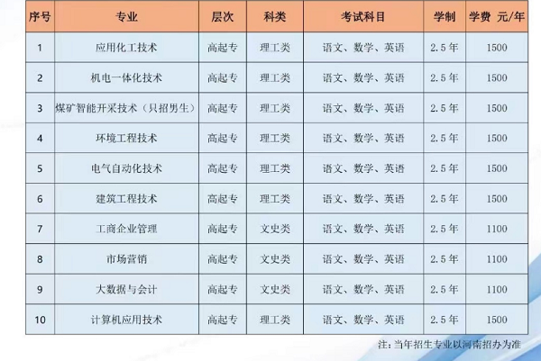 高升专(专科-2.5年制):文科1100—1300元/年,理科1200—1900元/年;