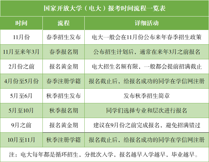1、河南电大每年两次次招生,分春秋两季注册入学,名额有限,招满截止!