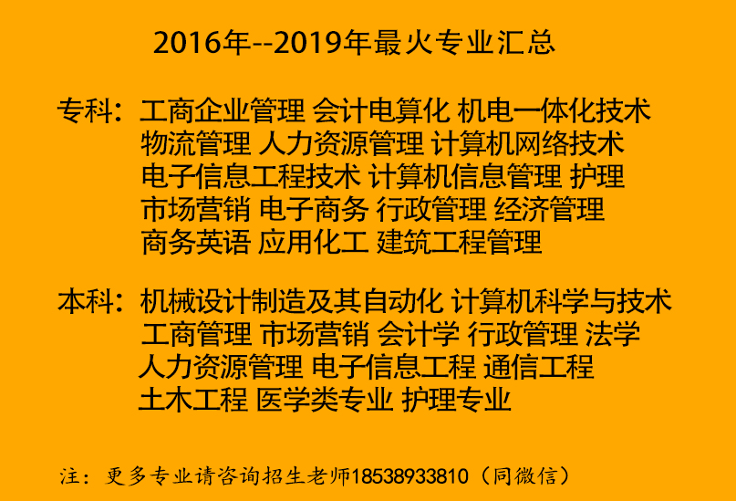 下面为大家列出2016年--2019年的报考热门专业,同学们可以结合自己的情况选择: