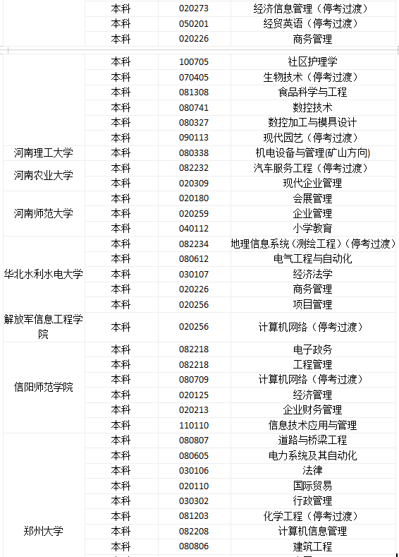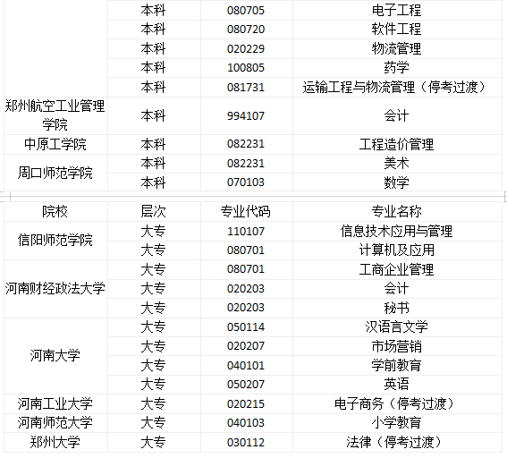 河南自考招生专业一览表(供参考)