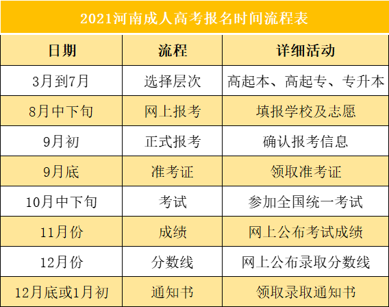 一、清丰成人高考报名时间流程一览