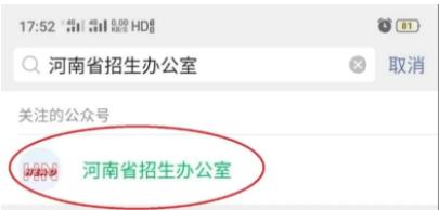1.2 微信搜索“河南省招生办公室”微信公众号并关注