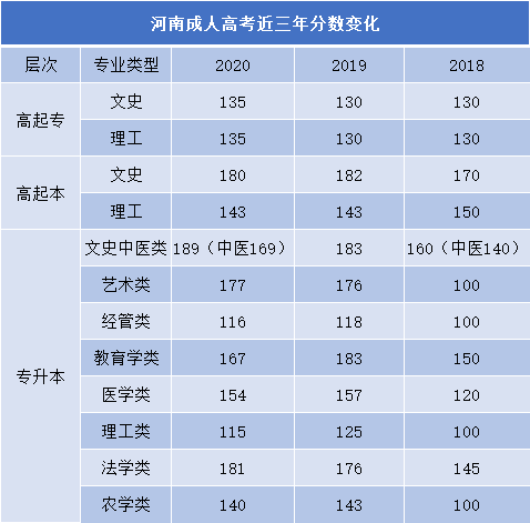 河南成人高考最低录取分数线