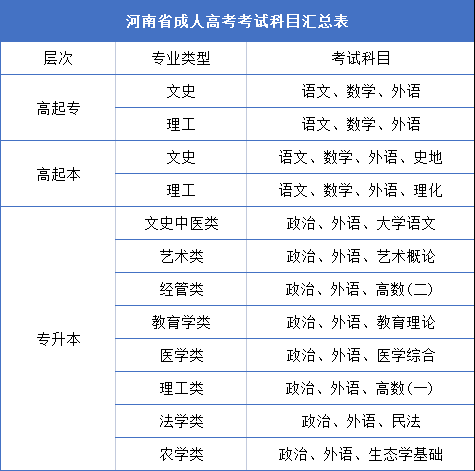 高起专层次是高中学历报考高职高专专业,考试的难度不大,具体的考试科目如下: