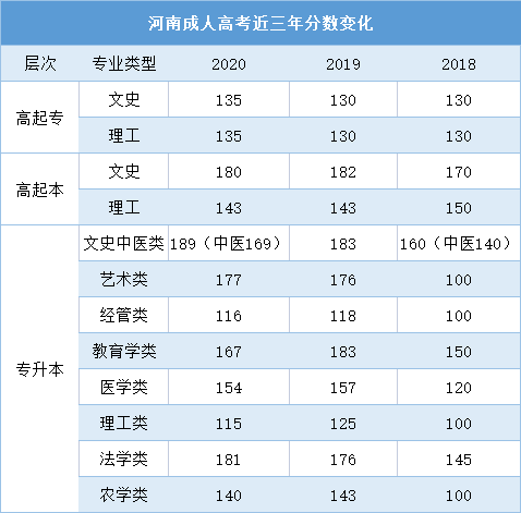 商丘成人高考最低录取分数线