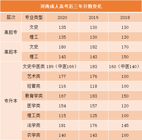 成人高考总分是450分,一般河南省内各地的分数线都差不多,不会说某个地方会比其他地方高多少分或者低多少分,除了特殊地区,三区三县会有照顾分,录取的时候分数线会低,其余基本上都是和省招办录取分数线差不多。