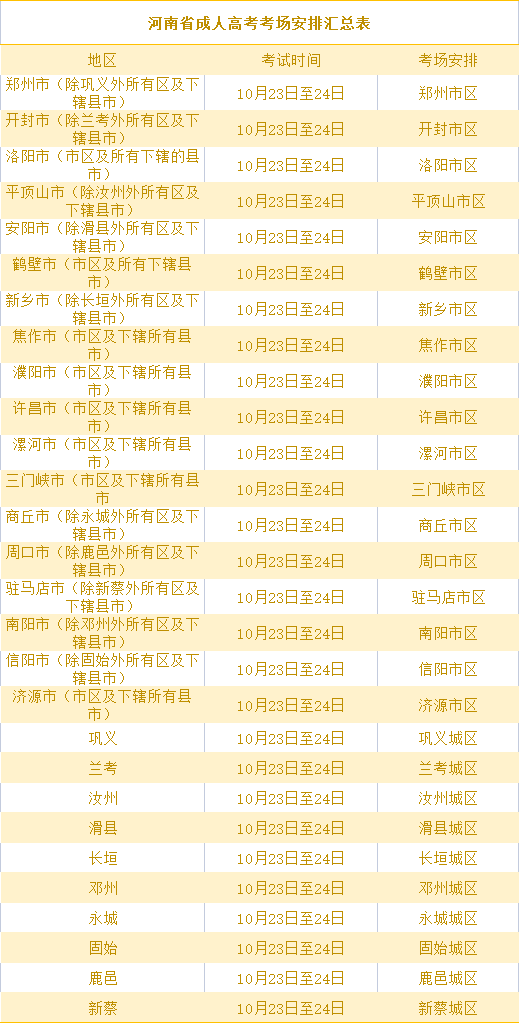 河南省成人高考考场安排规则