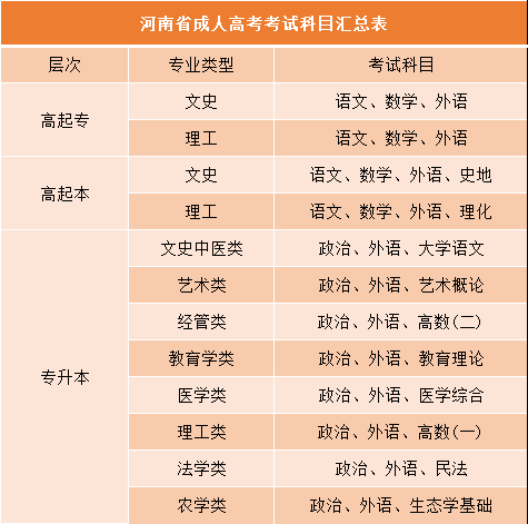 济源成人高考入学考试科目