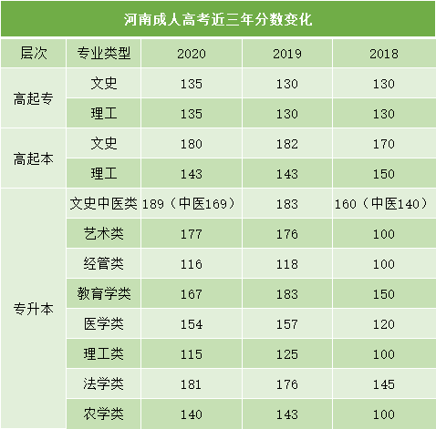 成人高考每年的录取分数线都是相差不大的,今年虽然还没有公布录取分数线,但是通过最近3年的分数线也可以大致判断出今年的分数线情况: