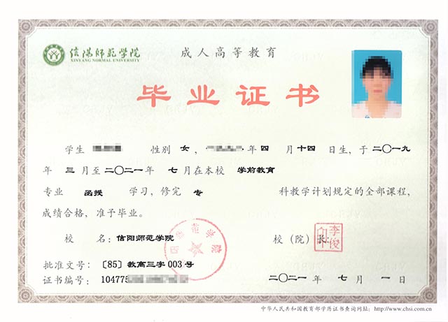 信阳师范大学成人高考毕业证与统招区别