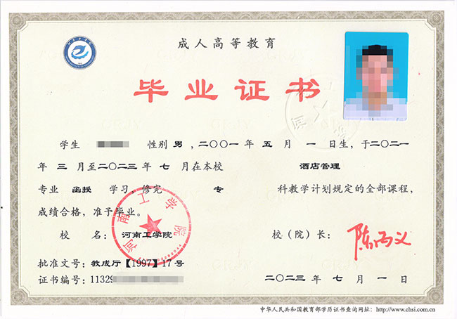 学生在规定学制年限内完成培养方案规定的全部课程和教学环节,成绩合格并达到其他相关毕业要求,准予毕业,由我校颁发国家承认学历、教育部统一电子注册的高等学历继续教育毕业证书。满足河南工学院学士学位授予条件的专升本毕业生,可申请相应的学士学位。
