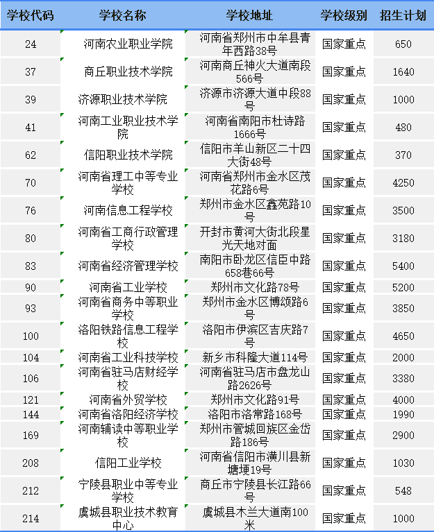 注:本文篇幅有限,不能列出全部学校,这里仅展示部分国家重点中专,更多学校请留言咨询。