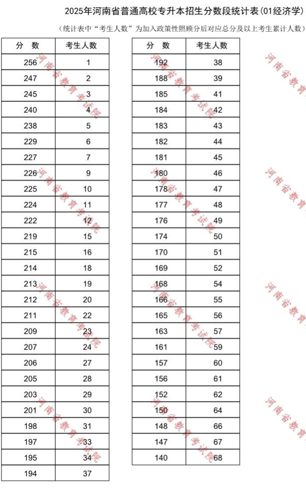 2025年河南专升本考试成绩及经济学专业分数段统计表公布,报考了这个专业的同学,一定要看一下分数段统计表,弄清楚自己的位次,对照往年的录取情况,再去填报志愿,能提高自己的录取率。