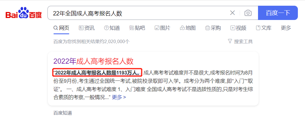 2022年成人学历报名人数达到惊人的1193万。同比去年的报名人数还只有378.53万人。今年成考的录取,可想而知,将会变得异常的艰难。