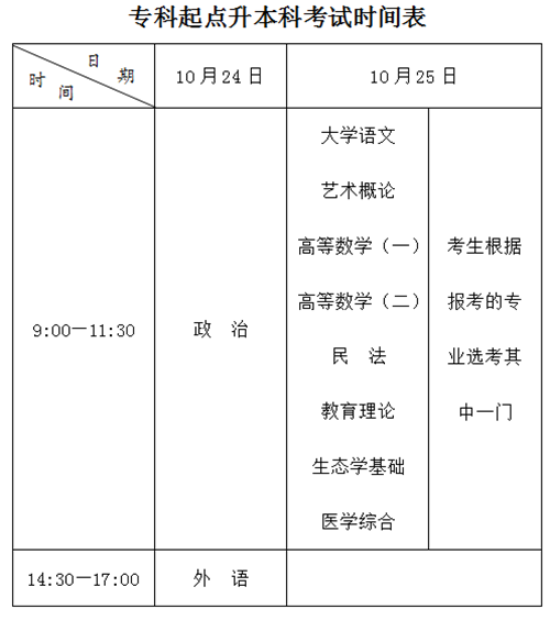 专升本考试科目
