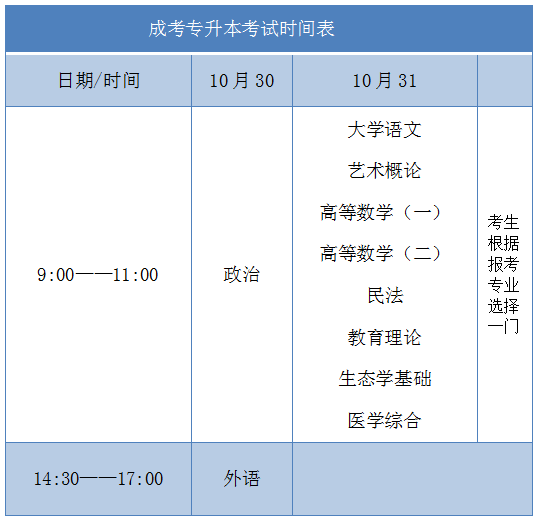 2025年成人高招全国统一考试时间是10月30日和31日。