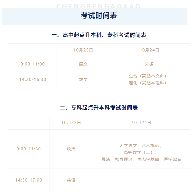 2025年山东成人高考,山东成人大专、成人本科考试时间安排表如下图所示