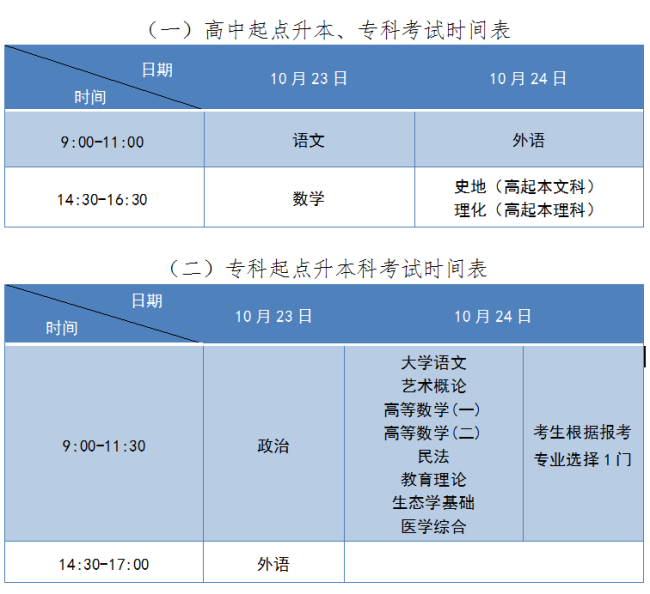 10月后一个周六、周日参加全国统一考试(具体以准考证为准)