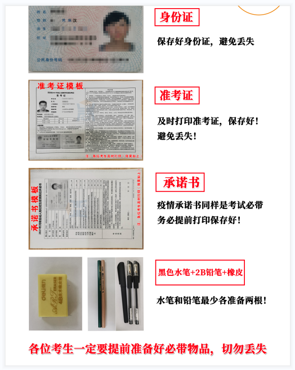 今年由于疫情原因,考生们还需要打印携带《疫情防控承诺书》、“健康码”、“行程码”并接受体温检测,三项正常后方可进入考点正常考场参加考试。