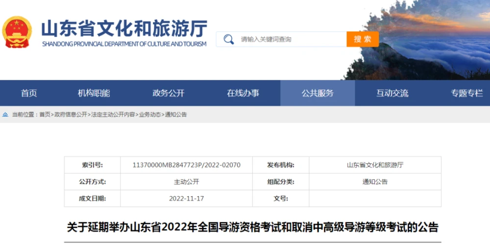 为保障广大考生考试权益和健康安全,综合各地疫情防控部门研判结果,经慎重研究,决定延期举行2022年全国导游资格考试(山东考区),取消2022年全国中高级导游等级考试(山东考区)。有关事项公告如下: