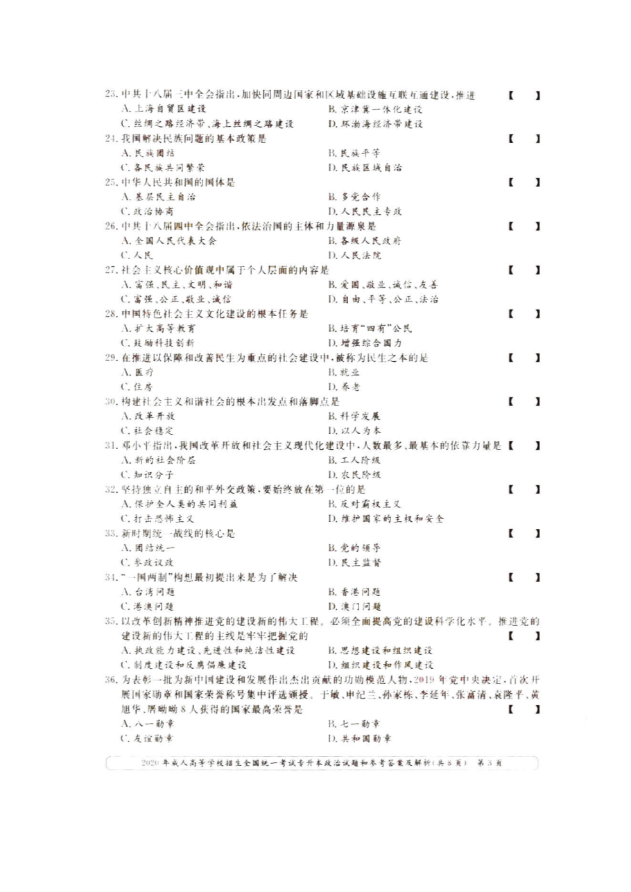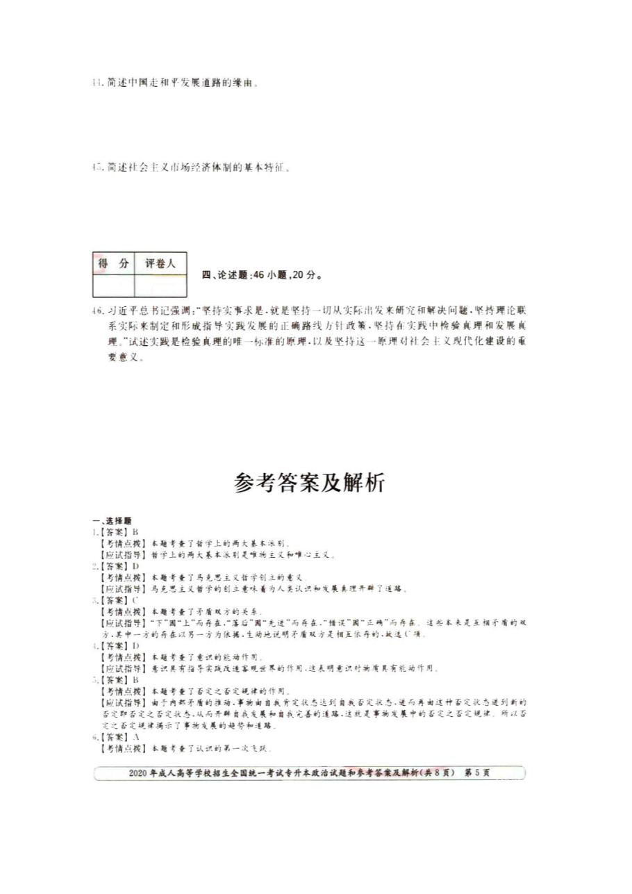 2020年河南成人高考专升本政治真题及答案(图片版)