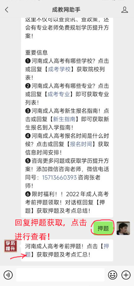 同学们关注河南成考网微信公众号“成教网助手(账号:xltszs365)”回复“押题”即可免费下载!