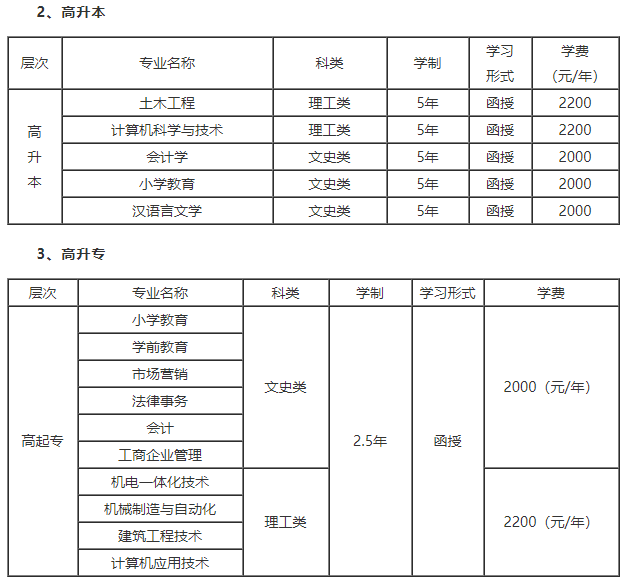 (2)高中起点本科考试科目:①文史类:语文、数学、外语、史地;②理工类:语文、数学、外语、理化