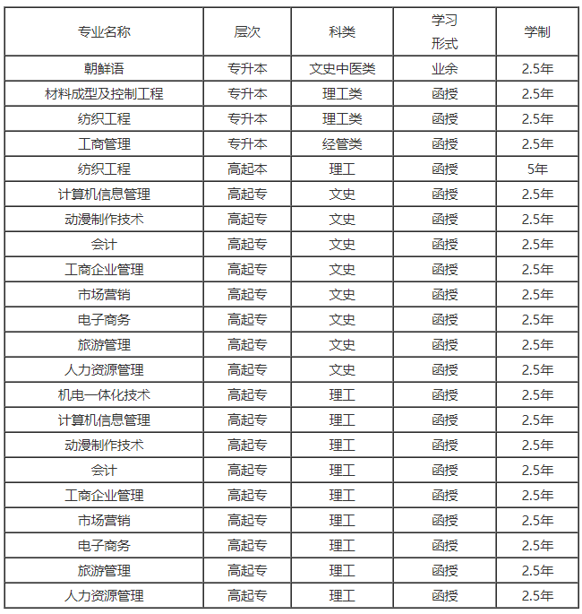 1、具有高中或相当于高中文化程度的在职职工或社会青年可报考高中起点专科、高中起点本科各专业;