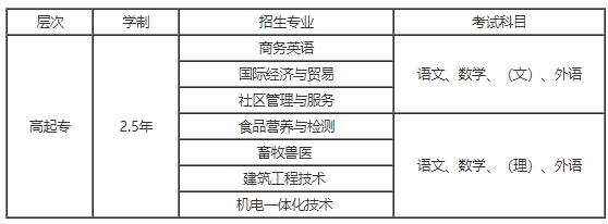 高中起点:语文、数学、史地综合、理化综合、英语。
