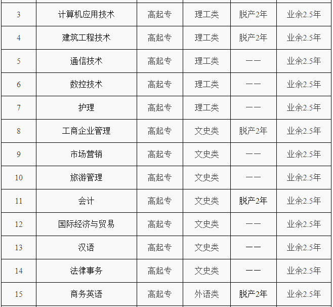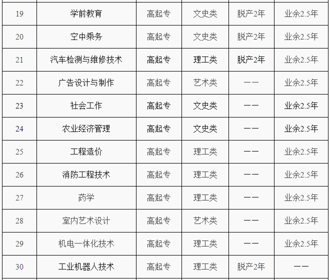 脱产专业都是高中起点升专科的专业,学习都是脱产两年,学费是每生每年4000元,网上缴纳学费。