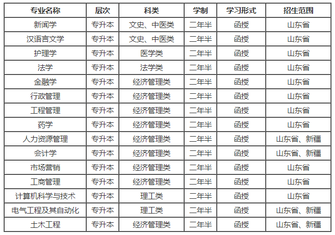 下图为大家整理出了山东的成人大学成人教育招生专业欢迎大家咨询报名!