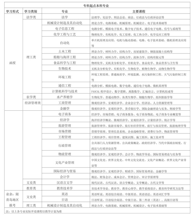 本文详细介绍了山东的成人海洋大学的招生专业以及专业的上课课程,山东的成人海洋大学招生专业只有专升本招生专业,理工类专业是该校比较好的专业。