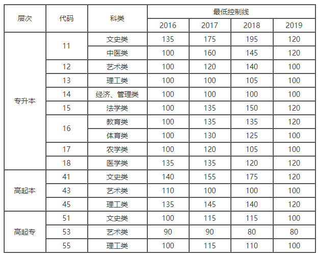 山东的师范类大学成人高考录取分数线