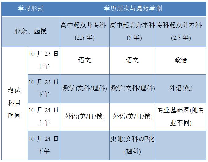 山东成人高考高起本、高起专、专升本需要考试科目: