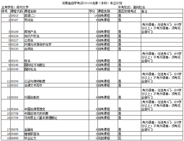 河南法学专业自考本科是自考比较好的自考本科专业之一,打算报考这个专业的同学都不太清楚具体的考试科目,下面给大家介绍一下。