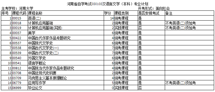 河南自考汉语言文学本科专业考试科目